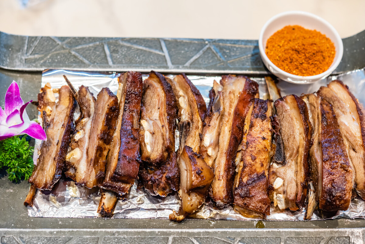 6.满族烤肉:大连地处辽宁满族地区,因此满族烤肉也是大连的一道特色美食。选用牛肉、羊肉、猪肉等肉类食材,加上各种调料进行腌制,然后串在竹签上烤制而成。