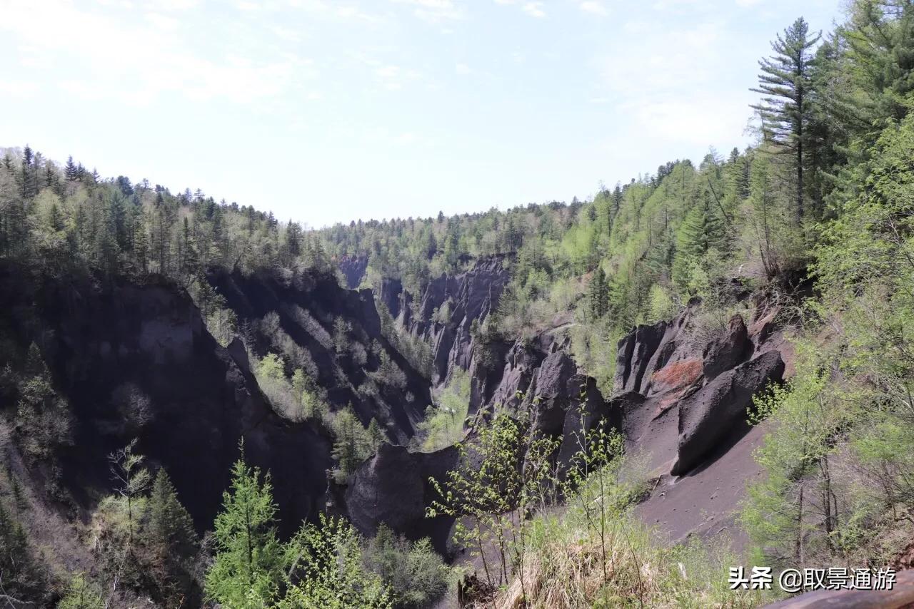 鸭绿江大峡谷在长白山南麓距天池30多公里的原始森林中,中间有中朝界河鸭绿江流过,故称鸭绿江大峡谷。两侧悬崖绝壁如削,中间奇峰异石林立,两边谷壁的巨大石峰、石柱、石笋、石墙,如古堡耸立、石笋破土。两壁火山岩和火山碎屑,经数百年的风雨剥蚀,形成千姿百态的图案,向人间展示鸭绿江大峡谷壮丽奇观。