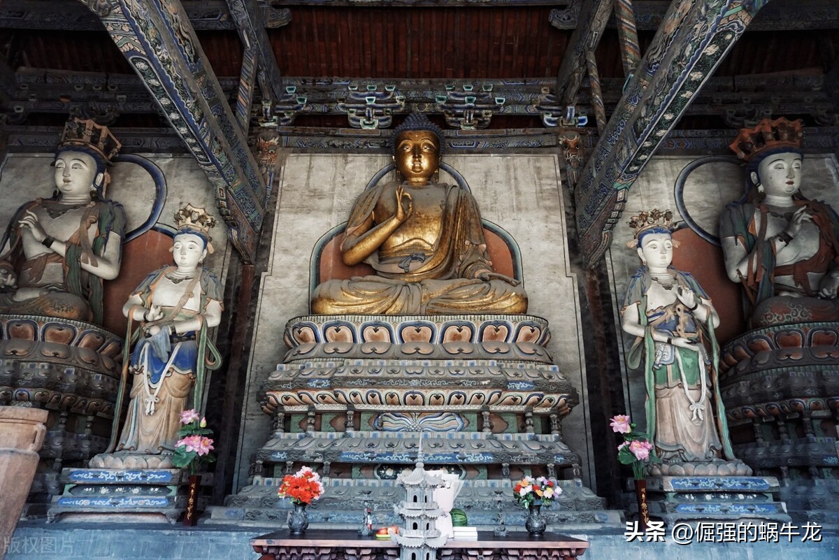善化寺俗称南寺,是一个规模宏大的寺庙群,总体结构保存得比较完整,寺院建筑高低错落,主次分明,左右对称,是中国现存辽金时期布局最完整、规模最大的寺院建筑,距今已有近千年的历史。全寺主要建筑沿中轴线坐北朝南、渐次展开。南面高大的是山门,中间是三圣殿,北面是大雄宝殿,层层迭高。此外,善化寺还有玲珑秀丽的普贤阁、文殊阁、廊庑配殿等。 寺内四大金刚和十八罗汉都是辽代的遗物,寺内的五龙壁虽无大同九龙壁的规模但精美绝伦,仍值一观。