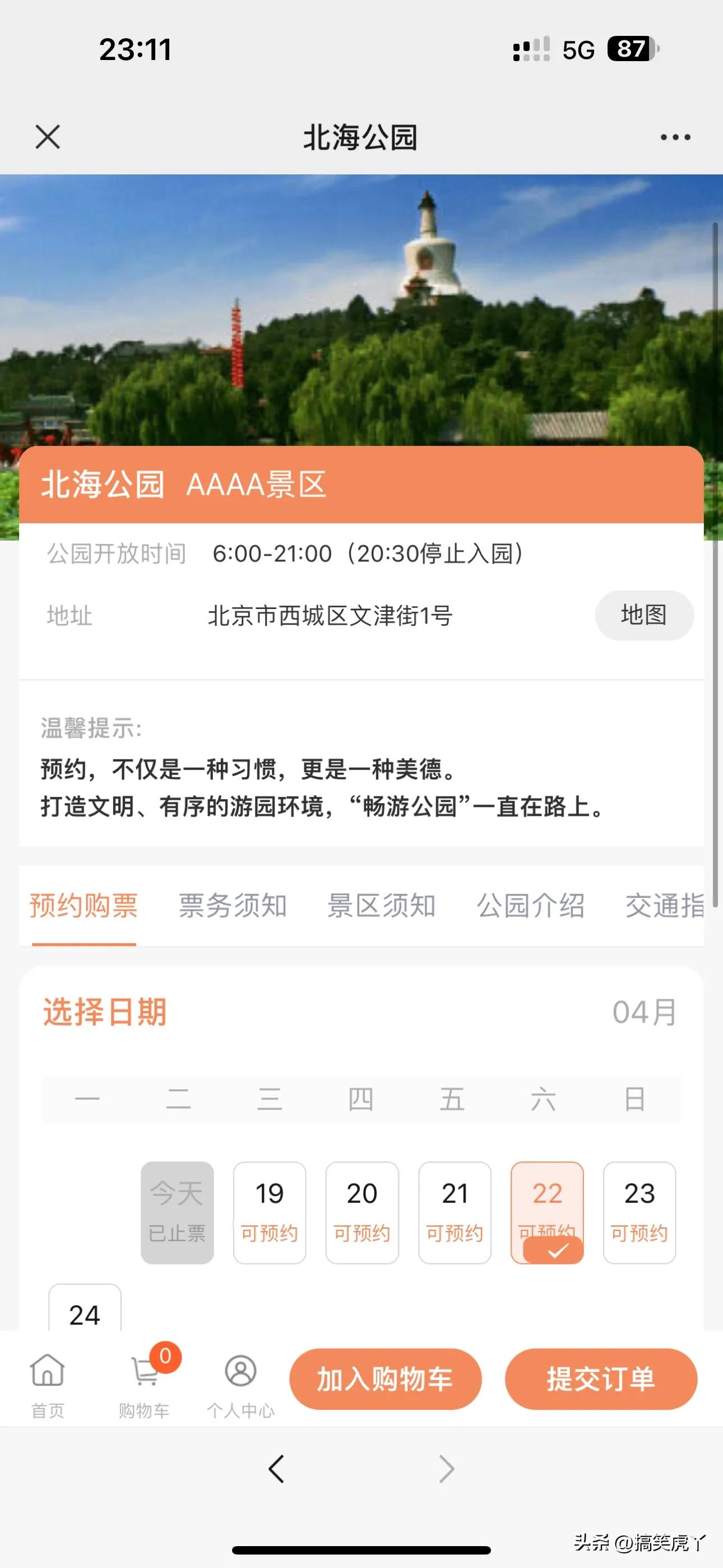 放弃了国家博物馆后,就去搜天安门附近的公园,发现北海公园不错,就去预约了北海公园,庆幸的是这个可以预约上,门票20块。