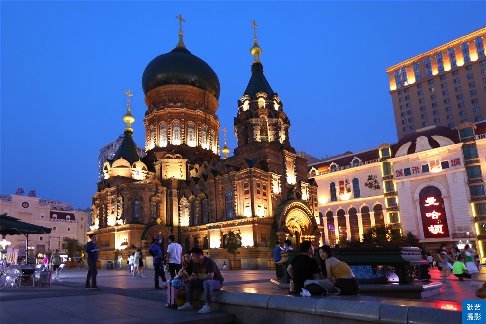 索菲亚广场上聚集来自全国各地的游客,大家纷纷拿出手机拍照留念,这里让你有一种不出国门也能感受到欧陆风情。
