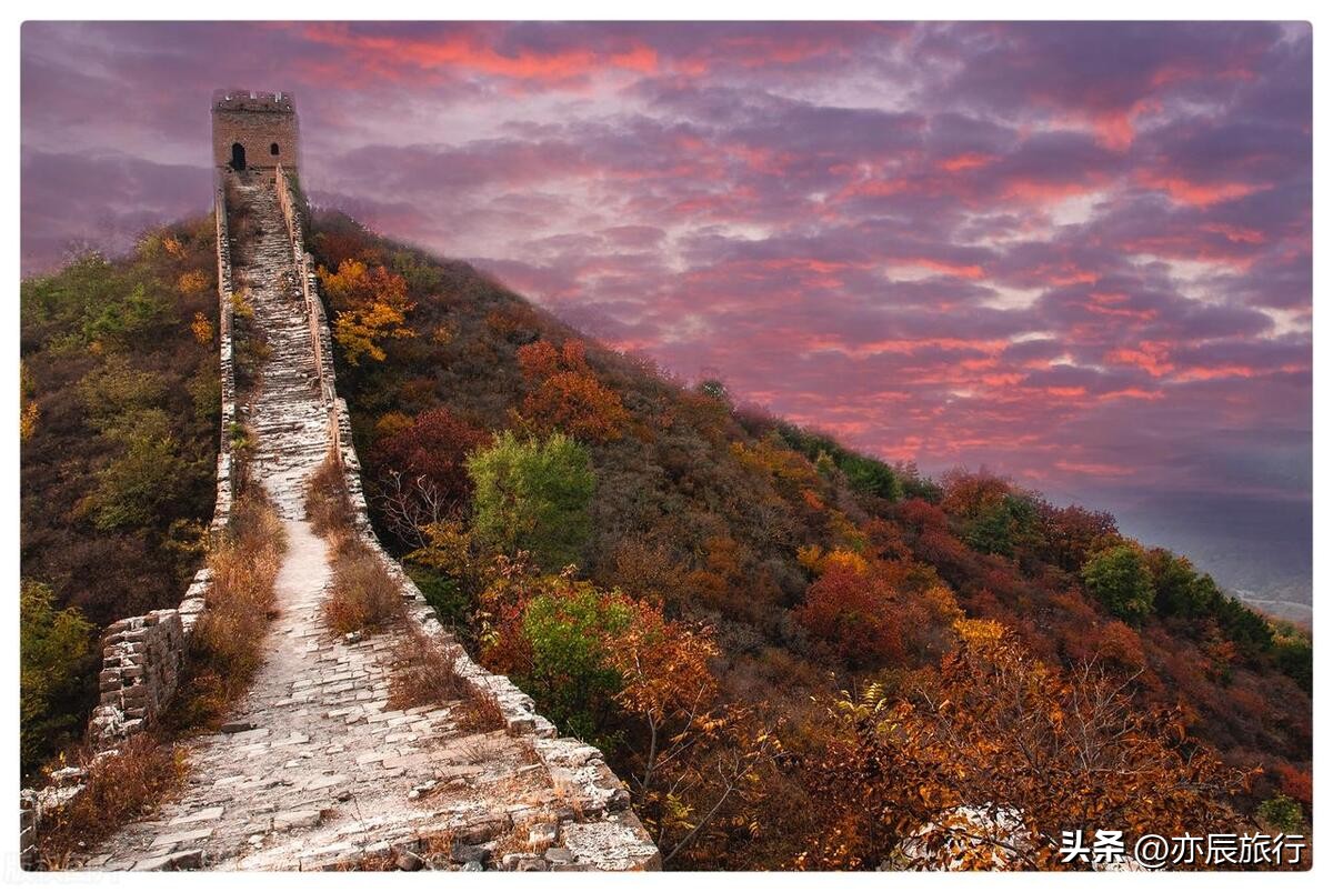 万里长城像一幅巨大的画卷,有的部分明快亮丽,有的部分暗淡幽深,有的部分线条清晰,有的部分色彩凝重。这幅画卷以雄关要塞为主体,以苍天云霞为背景,以崇山峻岭为衬托,以春花秋月为点缀,旭日的金辉,夕阳的血红,雪花洁白,炊烟缥缈,大自然用浓墨重彩的大笔,为蜿蜒的长城变换着四季不同的包装打扮。完整的美、残缺的美、色彩的美、线条的美组成了中国文化的意境美。