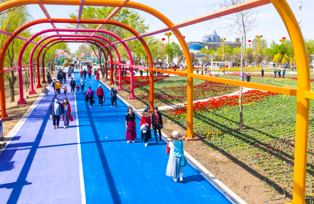 四月的青格达湖畔,320余万株郁金香竞相绽放。4月27日,六师五家渠市第十七届郁金香文化旅游节拉开帷幕,青格达湖旅游风景区也在今日正式开园迎客。随着活动知名度的提升,这里已成功跻身“五一”小长假新疆旅游的打卡地之一。