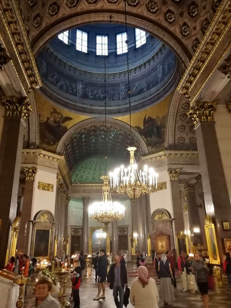 在这之前,我曾参观过梵蒂冈的圣彼得大教堂和佛罗伦萨花之圣母大教堂,今天又目睹了伊萨基耶夫大教堂。我们在圣彼得堡几次从伊萨基耶夫大教堂走过,并亲眼看到了教堂四周的大柱上留有二战期间德军围困圣彼得堡炮击时炸弹的痕迹。