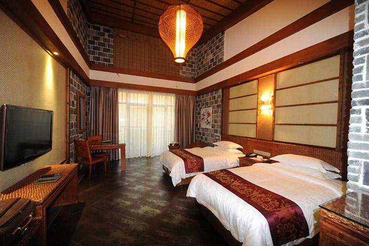 每个房间都宽敞舒适;设计选取天然竹木与青砖灰瓦为材料,搭配舒适典雅的室内装潢,营造出浪漫田园风。每个房间都配有一个超大的浴缸,24小时真温泉水供应。