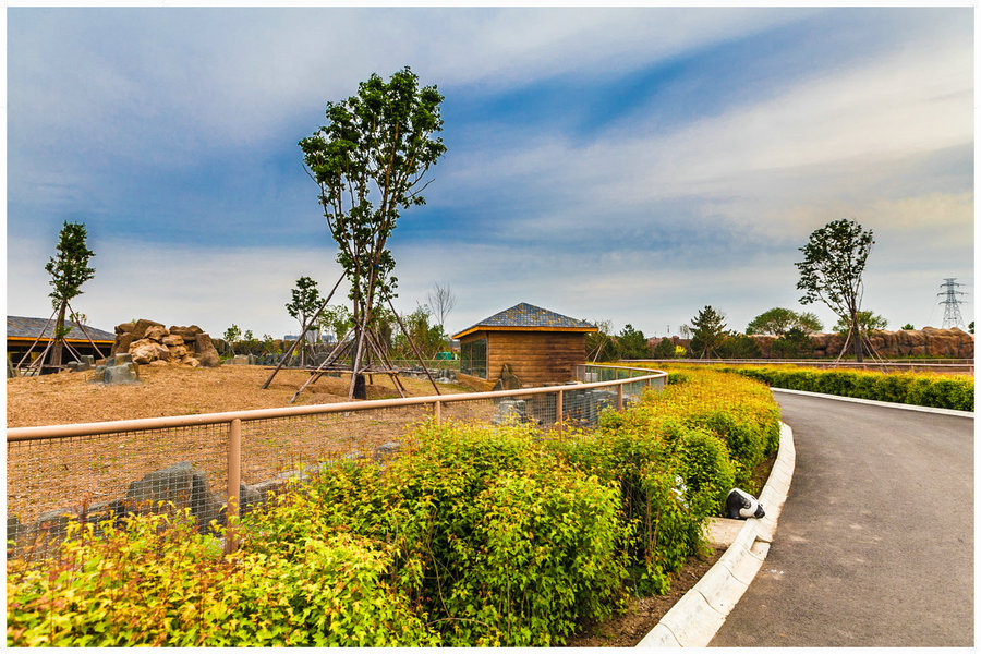 狮子山位于园区的中部,主要以凶猛的食肉动物为主。其中包括非洲狮(African lion)、银狐(silver fox)、金钱豹(amur leopard)、豺(dhole)、狼(wolf)等为主要动物。银狐又叫银黑狐,亦称玄狐。因其部分针毛呈白色,而另一些针毛毛根与毛尖是黑色,针毛中部呈银白色而得名。原产于北美洲北部西伯利亚东部地区,它是赤狐在野生自然条件下的毛色突变种。因此,它的体形外貌与赤狐相同,只是毛色有极大的差异。银狐嘴尖、眼圆、耳长,四肢细长,尾巴蓬松且长,是常见饲养的狐狸种。豺全身赤棕色,亦称红狼。体型比狼小而大于赤狐,下颌每侧具2个臼齿,体长95~105厘米,尾长45~50厘米;尾毛长而密,呈棕黑色,类似狐尾。豺是现存最强的犬科动物,也是最凶残和灵活的犬科动物,体型虽小于狼,但是战斗力要高于狼。