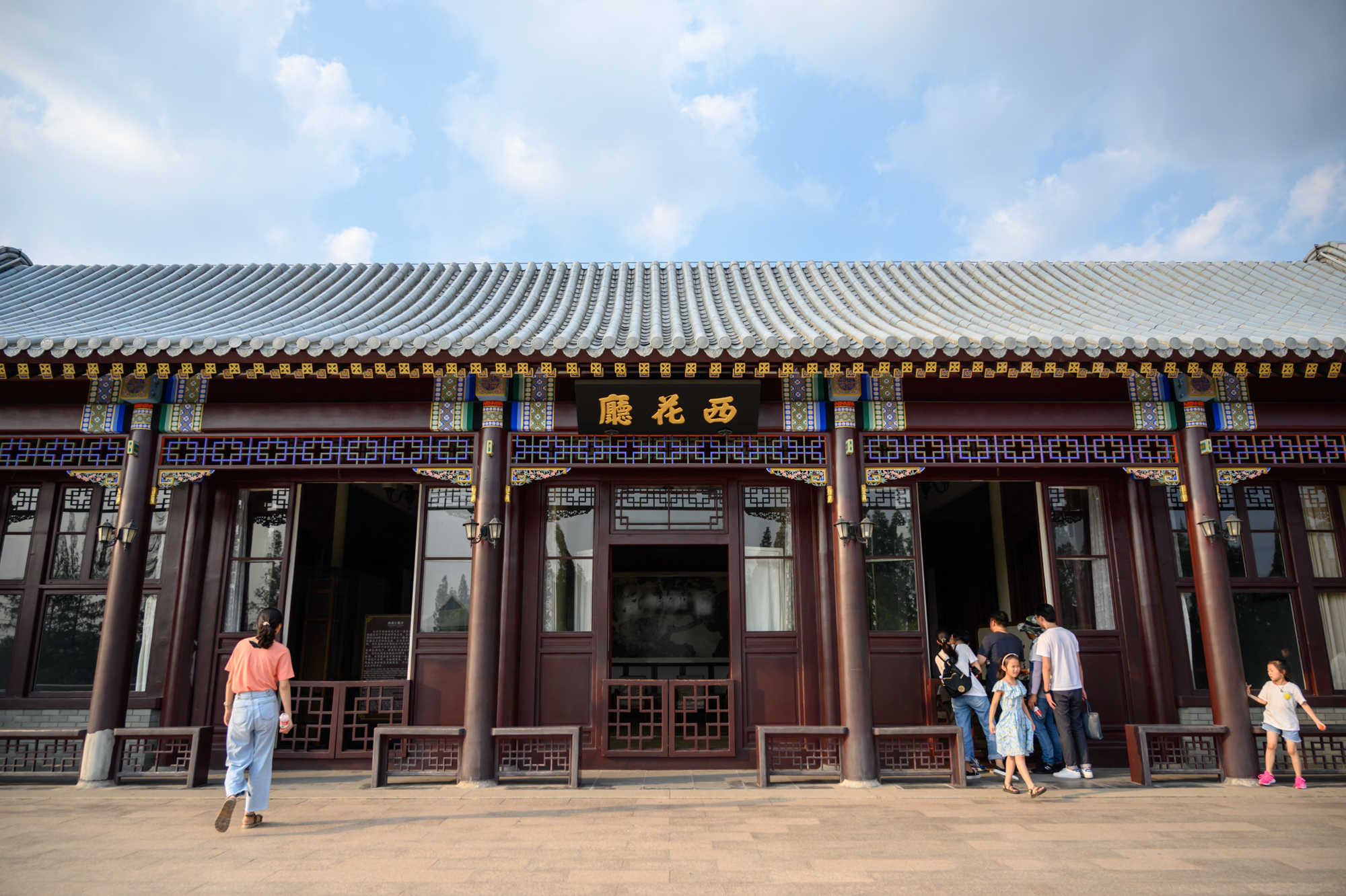 周总理铜像背后是一座仿北京中南海西花厅建筑,始建于1997年,历时1年多建成并对外开放,逛到这里可以发现,这里的建筑及雕像都是在一条中轴线之上。仿西花厅占地1万多平方米,是一个回字形建筑群,按照中南海西花厅1:1的比例建造而成。