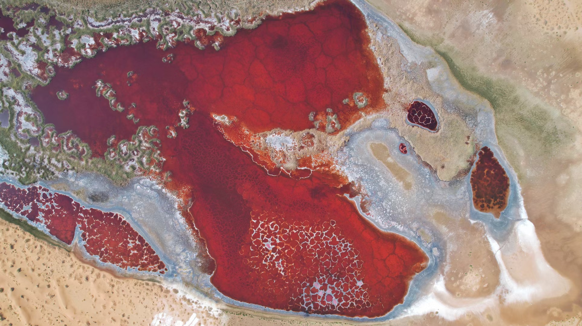来到沙漠则是不一样的体验,一望无际的沙漠,深度体验大漠风光,更令你想不到的是,在沙漠里居然还有湖泊的存在,下面图片红色的湖泊就是乌兰湖,被誉为地球之心。