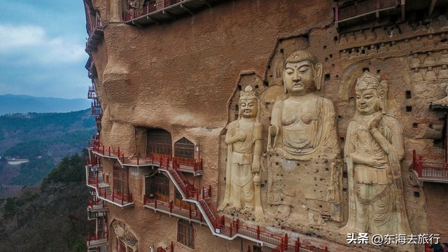 位于秦岭西端北侧,是小陇山中的一座孤峰,高142米,因山形似农家麦垛而得名。麦积山石窟与莫高窟、龙门石窟、云冈石窟并称为中国四大石窟。保存的造像以泥塑为主,保留有大量的宗教、艺术、建筑等方面的实物资料,体现了千余年来各个时代塑像的特点,有“东方雕塑陈列馆”的美誉。