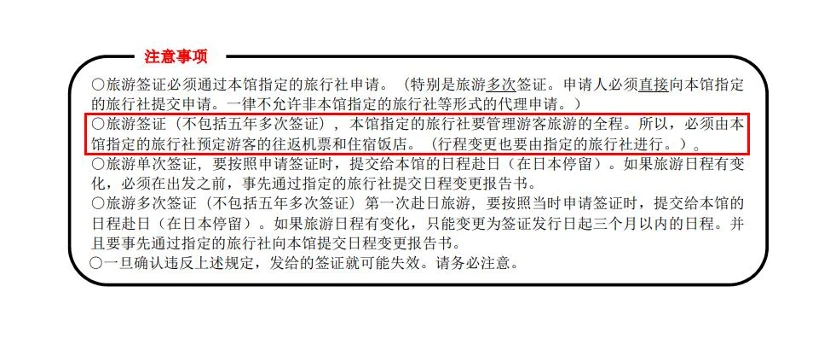 而根据规定,日本的团队旅行、3年多次和单次都必须通过旅行社预定机票+酒店。所以变相造成了无法申请3年多次和单次签证——因为国家没开放日本,旅行社不能帮你定机票和酒店,于是就不能送签。
