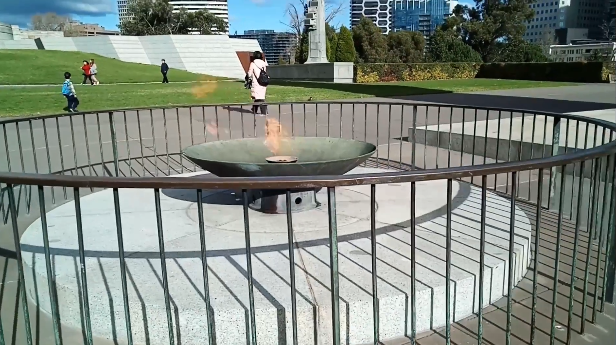 战争纪念馆旁边有个或盆,常年都会燃烧,用来纪念逝去的英烈