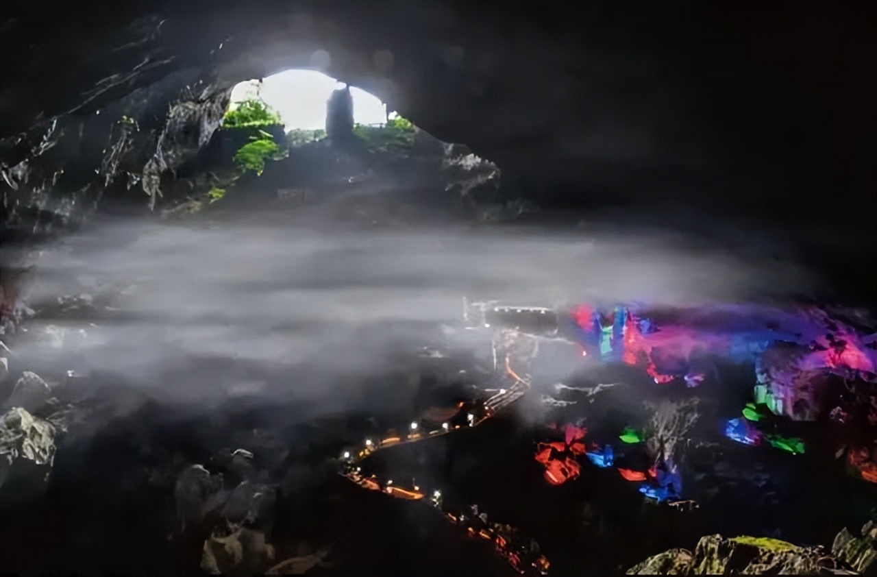 似上古奇书徐徐翻页,让人沉浸在万年的地貌变幻中,山外连州恰是一幅千年画卷,穿过画卷中的山林和云海,行走过林间曲径,来到连州地下河的入口,这是座巨型的石灰岩洞,入口极其高大幽深,因此取名为“大口岩”。