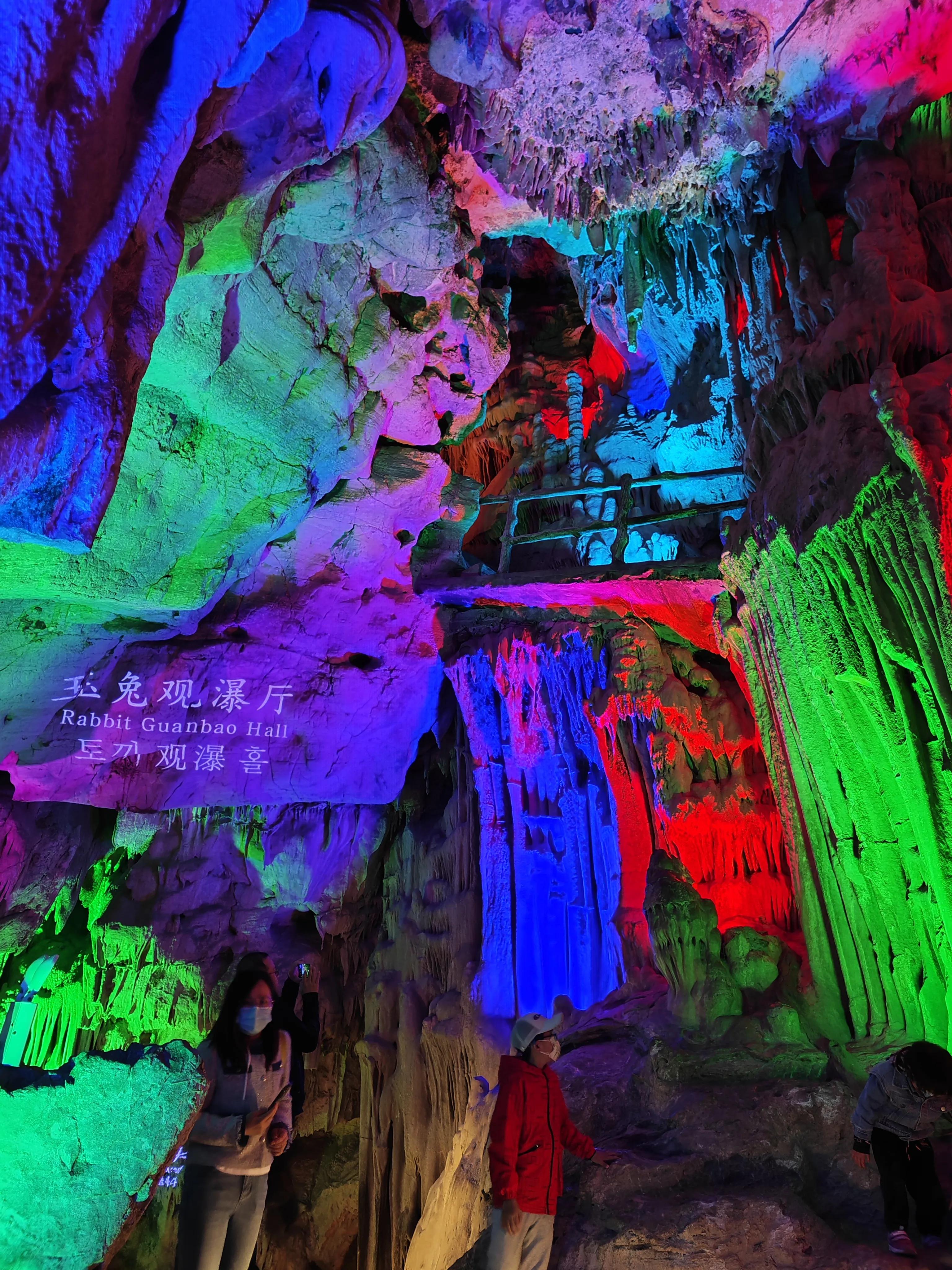 到目的地后,不到9点,吃了景区门口的早餐。网购换取门票后,再买了3人的电梯票(每人30,感觉有点坑,就是个直梯,玻璃的,上升不到50米,就到了),直接到达溶洞口。溶洞里边主要是经过灯光照射后比较漂亮,同时也能感受到大自然的鬼斧神工。大概半小时左右就可以逛完,出来后下山,下到快到底的时候有个岔口,可以去向古道领