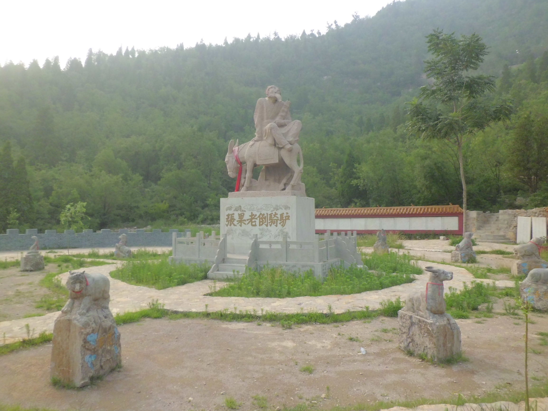 张果老山海拔虽449米,但相对高度很大,山势显得格外高峻挺拔。北面是断壁悬崖,幽深莫测;南坡稍缓,呈坡状倾斜,形成坐北向南之势。山坡上纽纹古柏(俗称拧劲柏)苍翠劲拔,躯干纽缠,条条粗粗根扎结在坚硬的岩缝之中,山花遍野,的确是一大奇观。