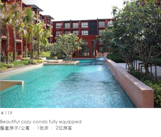 房源较多,多是华欣市内的公寓房,交通也比较便利,有独立空间的旅行住宿。大空间的住宿环境适合3—5人的小型旅游团体居住。