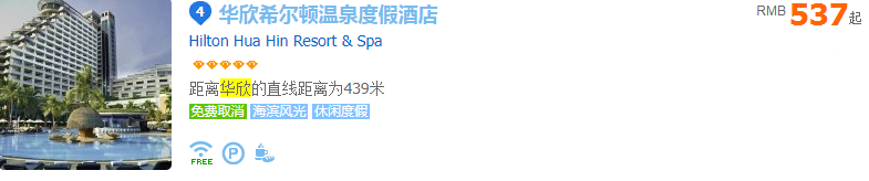 华欣自然不会少了国际知名连锁酒店的入驻希尔顿等都在曼华欣市极佳的位置为有钱的商务人士和游客提供最高等级的服务。