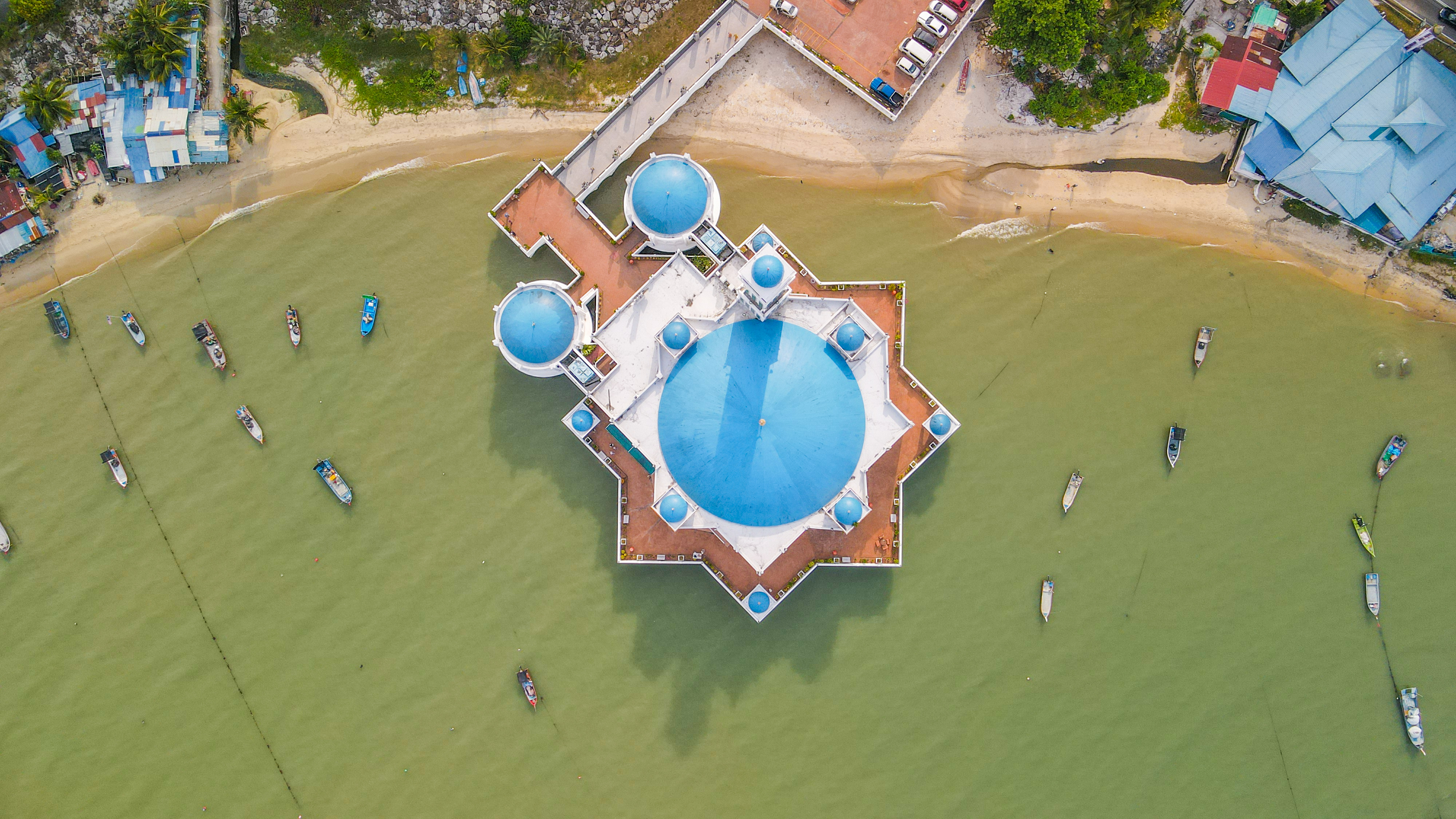槟城海上清真寺(Masjid Terapung)是位于马来西亚槟城州首府乔治市外海的一座著名清真寺,也是槟城的标志性建筑之一。