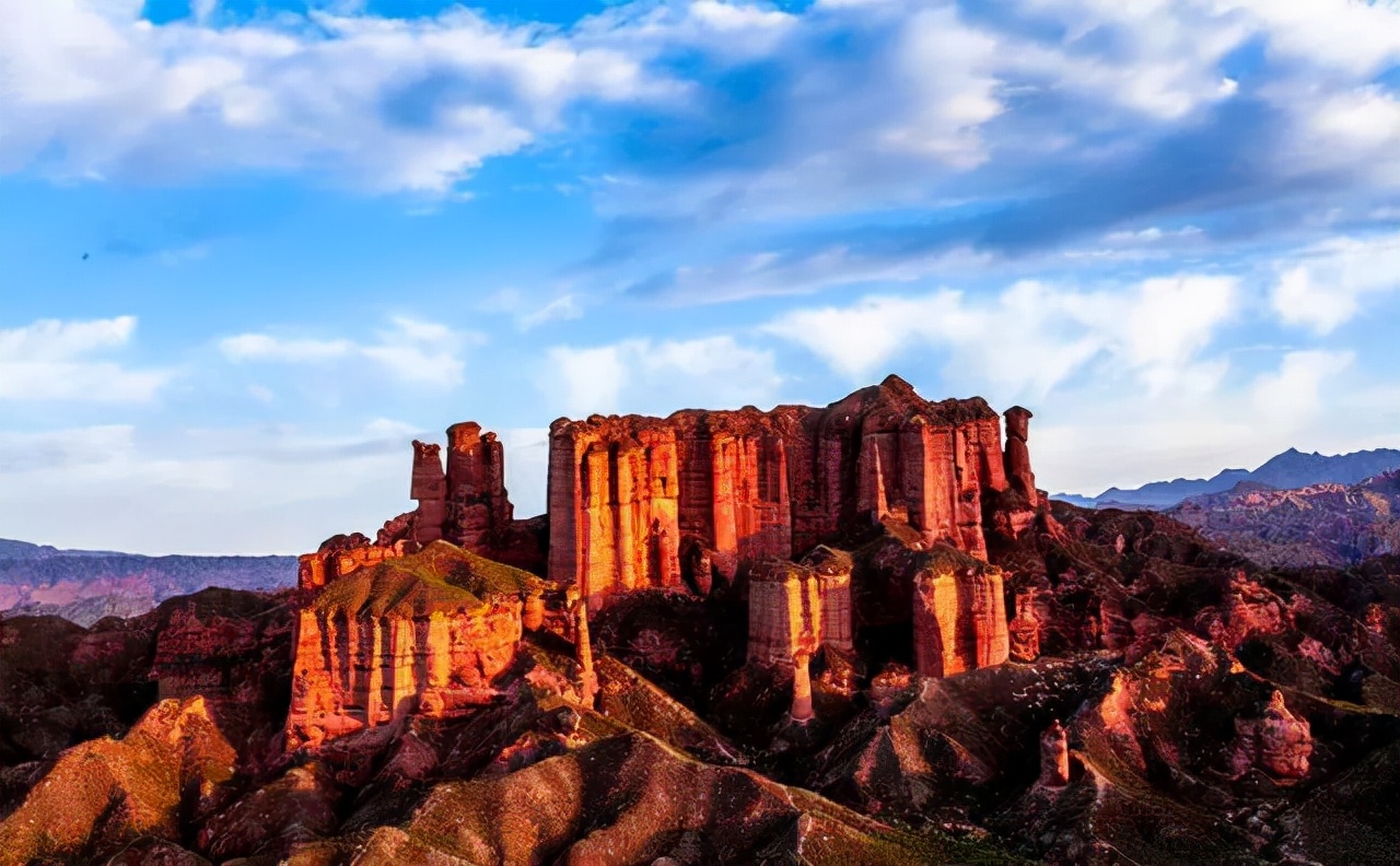 山野现宫殿,巍峨似天宫。冰沟丹霞,窗棂状宫殿式丹霞全国第一,被称之为“世界十大地质奇观之一”。