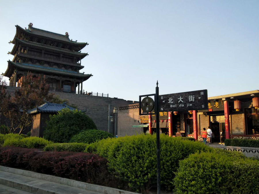 8、沿着南大街一直向北前行,到南大街、东大街、西大街的交叉口时候,游览基本结束,转入西大街,前行约150余米,右转,转入北大街,向北门方向前进,出城, 平遥 古城游览正式结束!