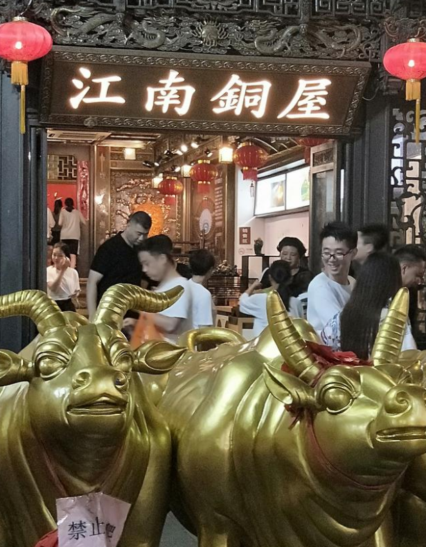 同时,这里还有朱炳仁铜雕艺术博物馆,博物馆门窗、家具等都是铜制的,金光闪闪夺人眼球。博物馆内的每一件物品全部都是铜制作的,非常好看。我们最后要离开杭州的那天运气不足,看到了朱炳仁老爷爷真人,坐在高台上签字,感觉至少80岁以上,感慨万千,如此高龄的大师,还亲力亲为的在馆内为游客签字,对这份事业的热爱很让人佩服。