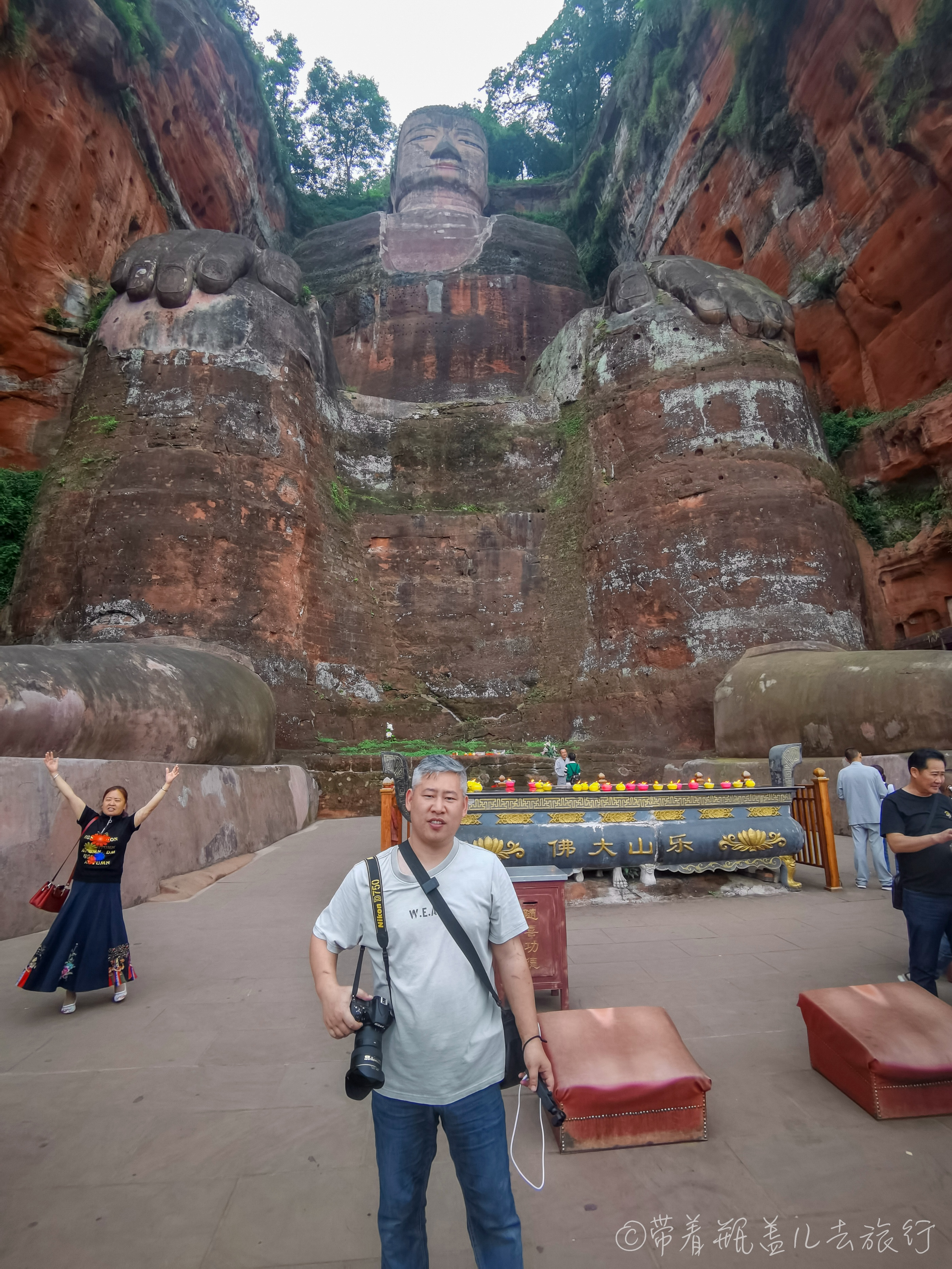 站在乐山大佛的脚下,抬头仰望乐山大佛,通高71米的乐山大佛,非常的壮观,端坐在崖壁上,一双巨大的佛脚是相当的让人吃惊,传说临时抱佛脚,因此有很多游客都想要抱一下乐山大佛的佛脚呢!