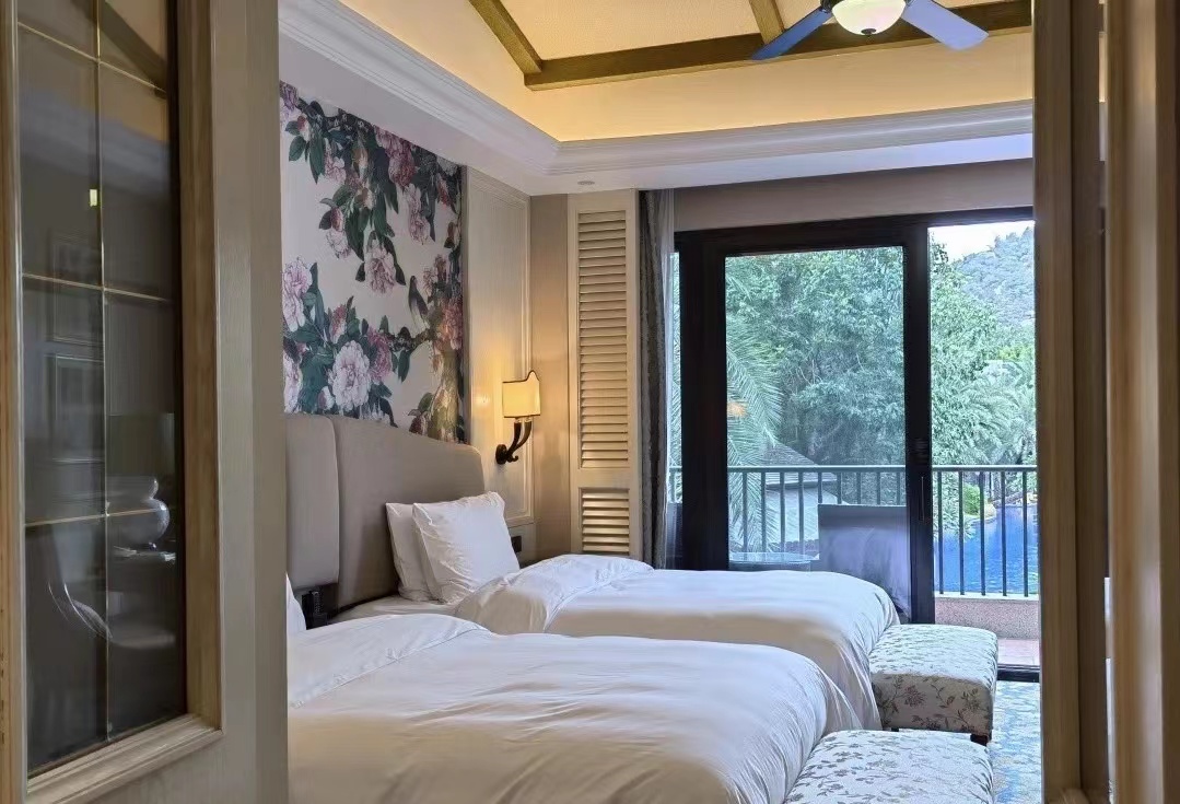 我也去打探了一下其他房型,像豪华海景家庭房,有两间,外间有两张儿童床,你们不用再担心二胎的问题啦!