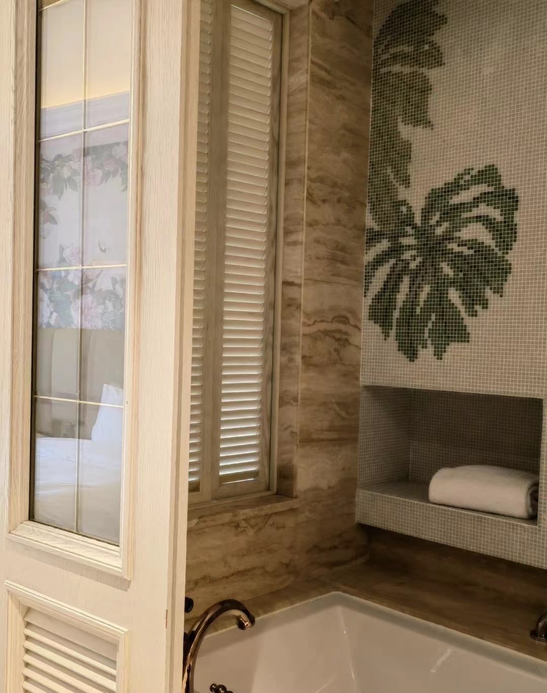 房间到处都有百叶窗和绿植壁画,格外小清新。