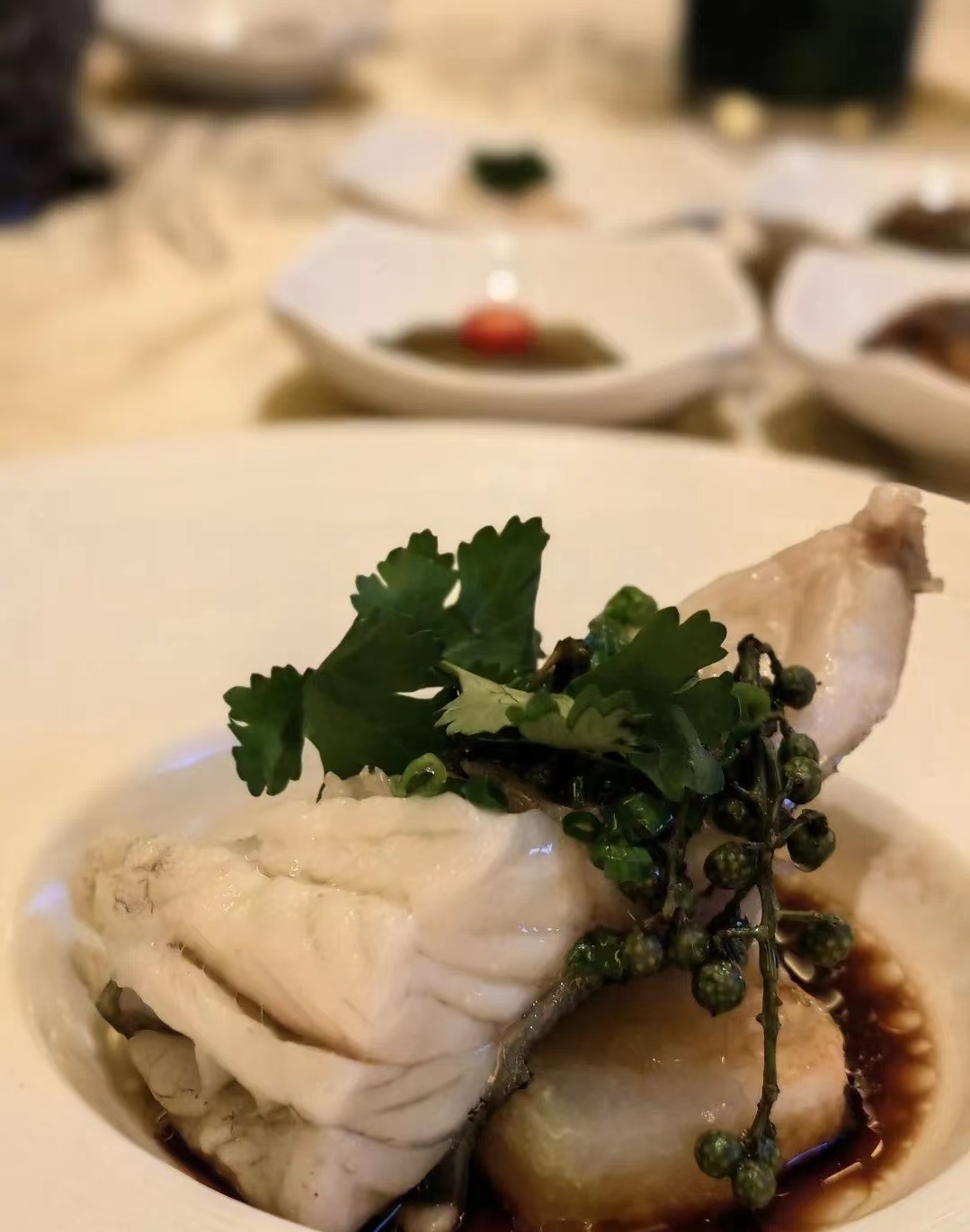 活拆蟹肉玉环烩竹笙带着荤素搭配的巧心思,口感丰富却不杂乱;黄贡椒海古斑,带着一点点辣味,鲜香动人。