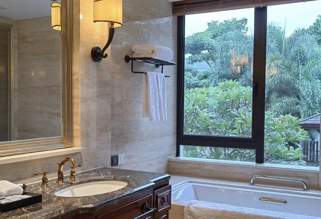 像喵妈这个款型,就是某明星的同款角度。真是一个超大的观景圆浴缸,绝对可以躺看星辰大海,美极了(应该也包括我自己哈哈哈,快来夸喵妈~)!而且和三亚的感觉不太一样,它更优雅,更偏南洋风格。