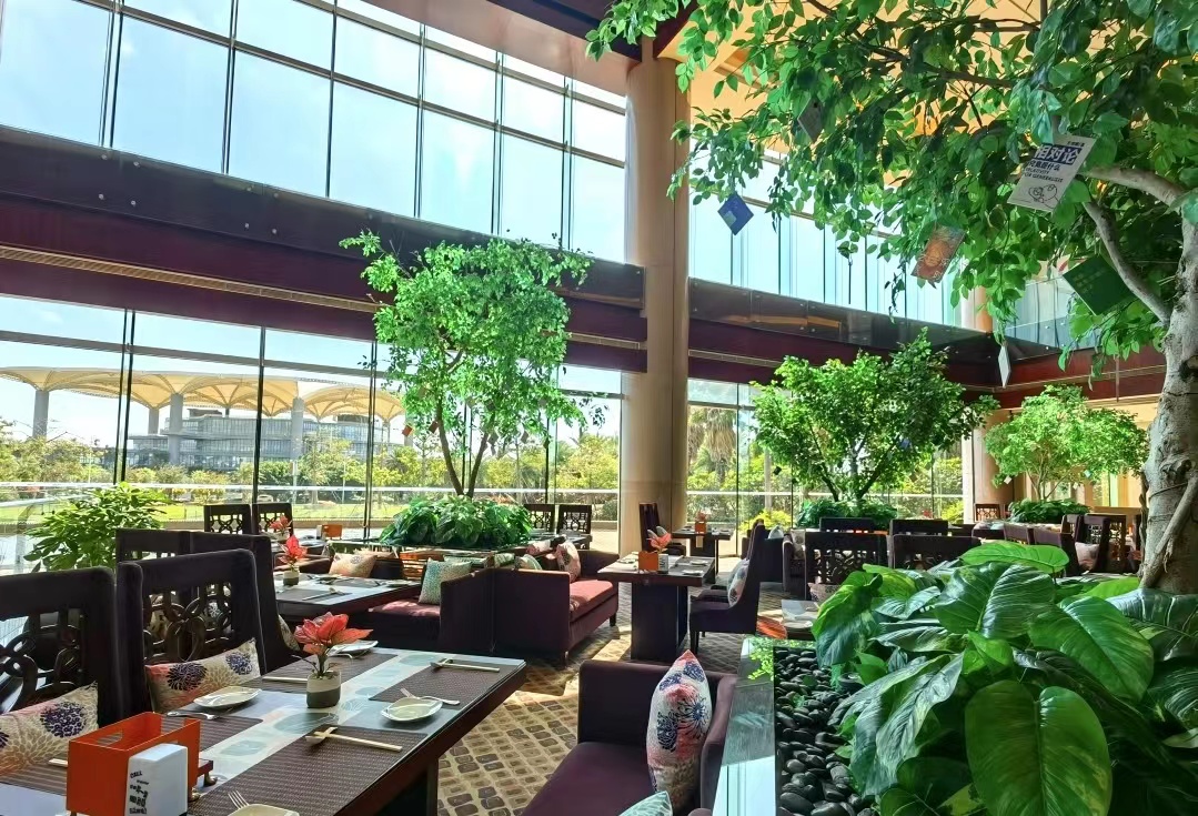 选住水苑区域还有一个什么好处呢?它有个自己的餐厅,可以在水苑咖啡厅吃早饭,也可以换换口味搭电瓶车去酒店区域的餐厅吃早饭。