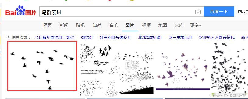 11. 接下来感觉图片头部有点欠缺,所以我们可以考虑加点其他的因素上去,可以在百度搜索鸟群,把鸟群加上去。就大功告成啦。