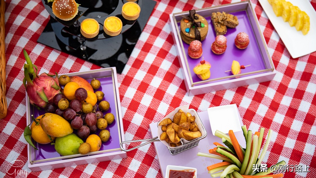 而且我们还选择在草坪上体验了一次野餐,这是在无边泳池跟前的草坪上,我们带着准备好的美食,甜品和水果,将毯子铺在了草坪上,风和日丽,阳光刚好!