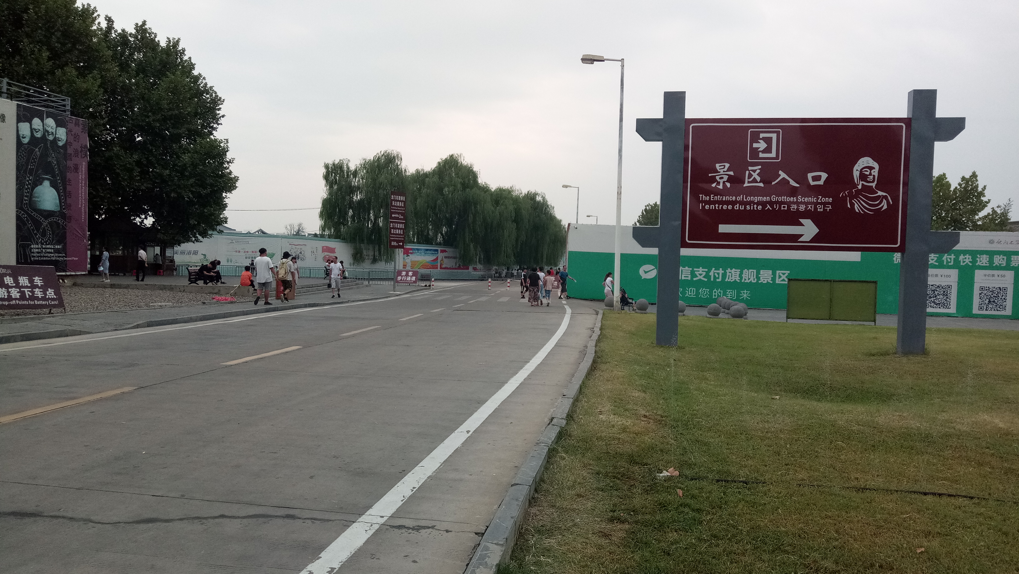 先在宽阔的伊河岸边拍张照,前面的大桥是龙门桥。后来才知道,游览结束后,我们将从河对岸经龙门桥返回停车场。
