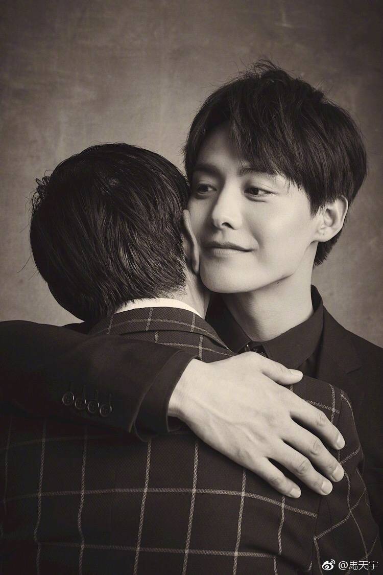 就和这张图一样,马天宇倚在父亲的肩头,而另一张则给了家人宽厚的臂膀,成为家人的依靠。这样的马天宇,可敬、可爱。