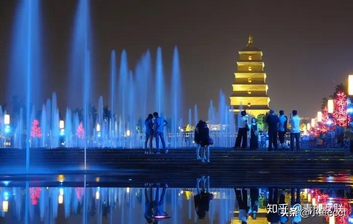 大雁塔辐射的周边很大,有南北广场、东西南苑、步行街、商贸街等,喷泉表演就在北广场,从大雁塔南广场出来,就是大唐不夜城,夜景很绚丽,还有表演可以看。