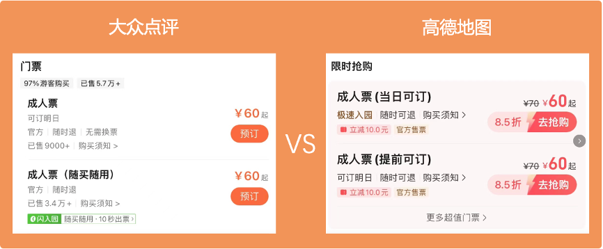 可以定景点门票的平台很多,除了这里,还有去哪儿、同程、携程、高德、大众点评,以及景区的官方微信平台,等等,有时票价显示的五花八门,让人弄不清到底多少钱。比如前几天,我小姨买苏州虎丘的门票。我在大众点评上看,票价是60元,她在高德上看到,说显示票价70元,优惠10元后60元。后来他们去景点,票价就是60元。