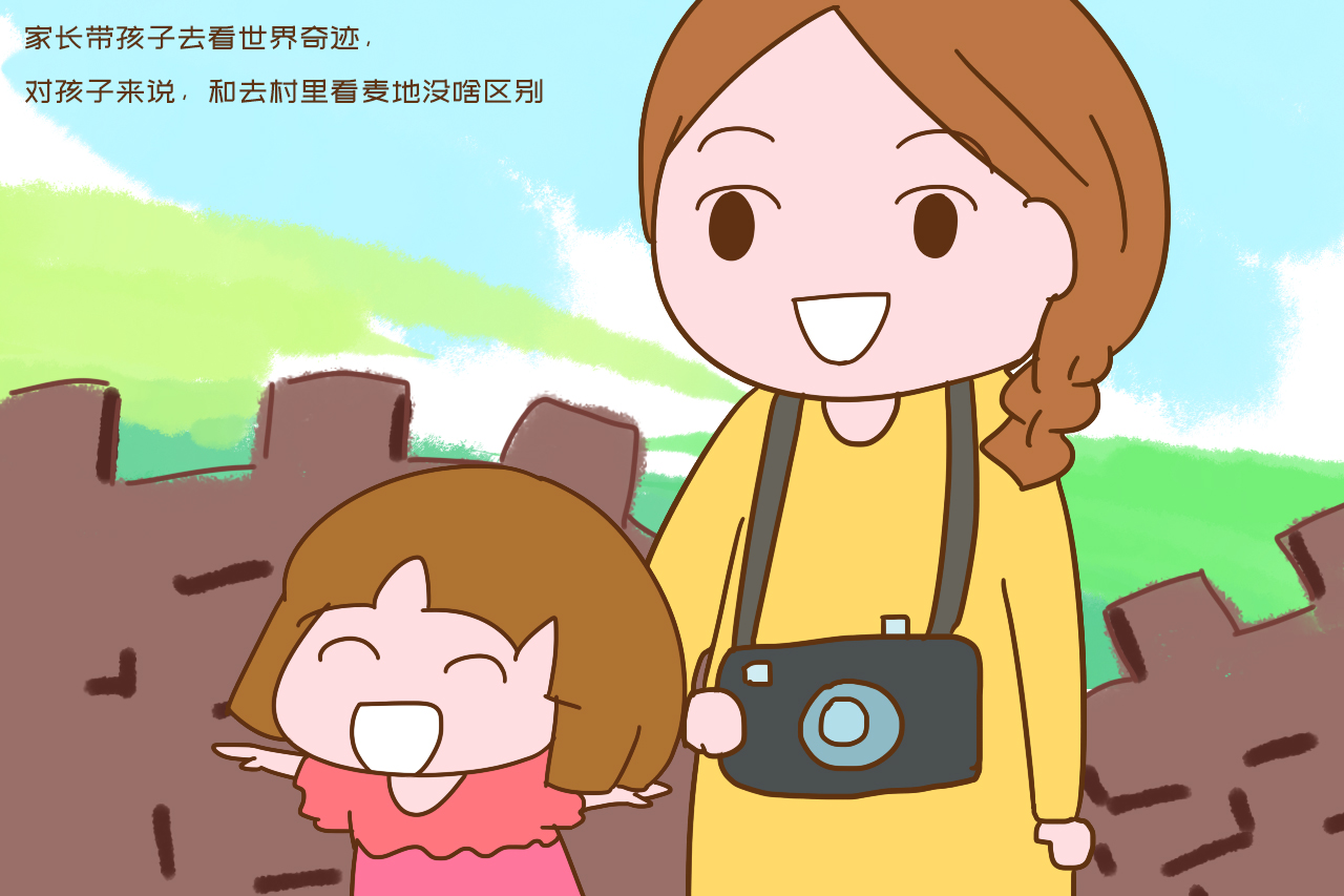 关键是孩子对这些景点并不感兴趣。那些家长认为孩子应该认真欣赏的美景,孩子未必好奇。家长带孩子去看世界奇迹,对孩子来说,和去村里看麦地没啥区别,带他去名胜区,还不如带他回老家村子里爬树和钓鱼虾。小孩子,到哪都是找游乐场。
