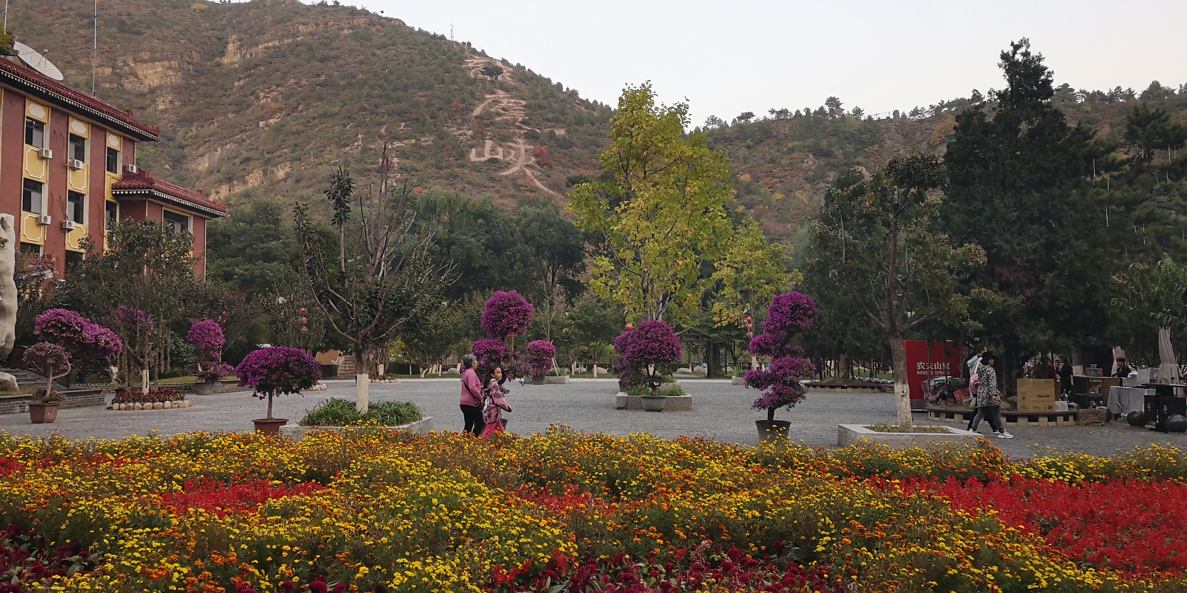 远处应该就是文化广场,有很大的露天舞台。天色渐晚,我们没有过去,准备出景区了。