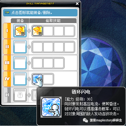 幻影的核心技能之一(印技之瞳),利用该技能可以窃取冒险家的大部分技能。窃取需要注意,该技能仅仅只能窃取冒险家的技能(除此之外,别的职业群的技能均不能被窃取,例如-骑士团职业群、英雄职业群等):