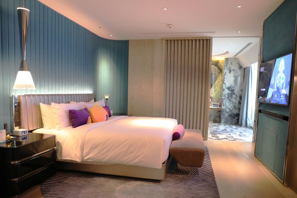 这家酒店是2018年开业的酒店,总共有372间客房,真的是名副其实的大酒店和豪华酒店,而且从外观上看,它绝对可以说是西安颜值最高的酒店了。而且因为背靠曲江池,所以在西安这个内陆城市,你可以站在窗前就能看到水,条件还是蛮棒的。