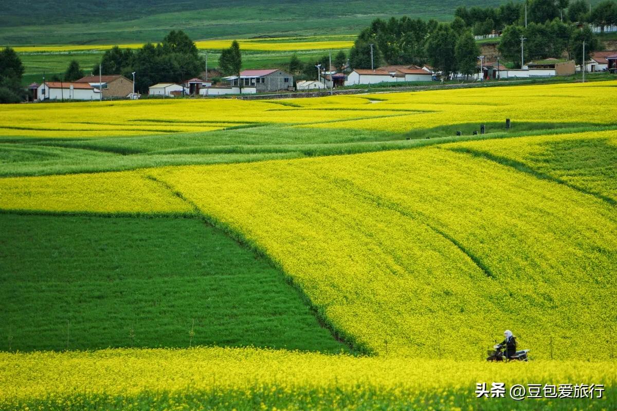 小贴士:青海省海北藏族自治州的门源县海拔较高,气温偏低,油菜花开放的晚晚一些。青海湖南部地区海拔低些温度高些,6月底油菜花就开放了。而门源油菜花的开花时间是7月5日至25日,最佳花期是7月10日至20日。