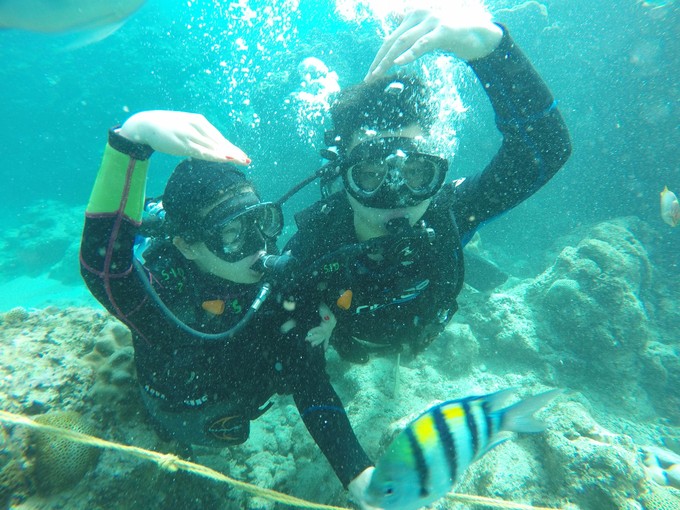眼前是蔚蓝色的海水,身边是鱼群珊瑚的环绕,身旁是美丽心动的女孩,此刻来一场海底求婚,浪漫而又刺激,沧海桑田见证你的真心!