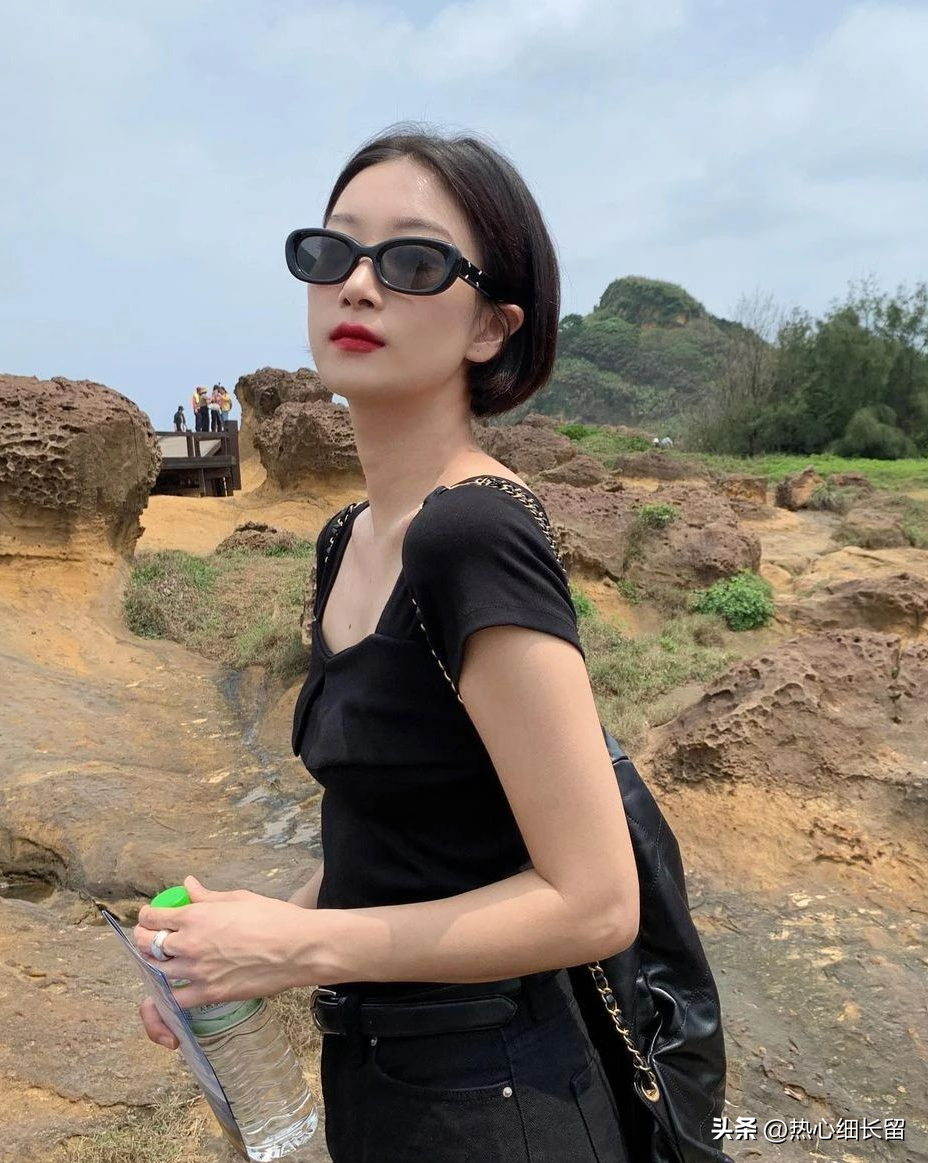 而且装饰作用也是显而易见的。戴上墨镜的女生,酷得更酷,甜美的少了一份甜腻。