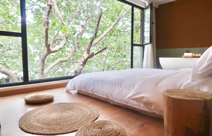 装修于2020年,环境和硬件都很棒,配备了智能马桶、智能窗帘和新风系统,床垫是20厘米厚的乳胶床垫(四星级酒店的配置哦),还很贴心的在门上安了隔音棉,睡眠体验超级棒。