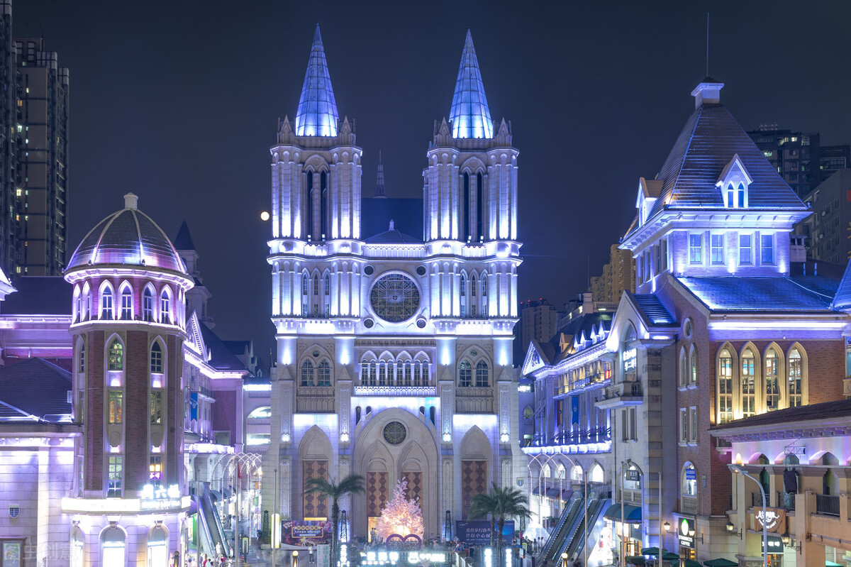 位于武汉市洪山区意大利风情街1号楼,多莫大教堂是武汉的地标性建筑,哥特式的建筑风格,整个教堂造型优美庄严肃穆。晚上还有五彩斑斓的灯光秀,流光溢彩,浪漫氛围十分不错,超有欧洲风情的感觉。