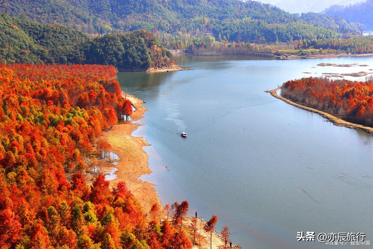 红枫湖位于贵州省贵阳市清镇市,是国家级的风景名胜区、国家湿地公园和国家城市湿地公园。秋天时分,红枫湖两岸的枫叶逐渐变红,与清澈的湖水和远处的山峦相映成趣,构成了一幅绝美的画卷。此外,红枫湖还有许多特色项目,如游船、垂钓等,让游客充分感受湖光山色的魅力。