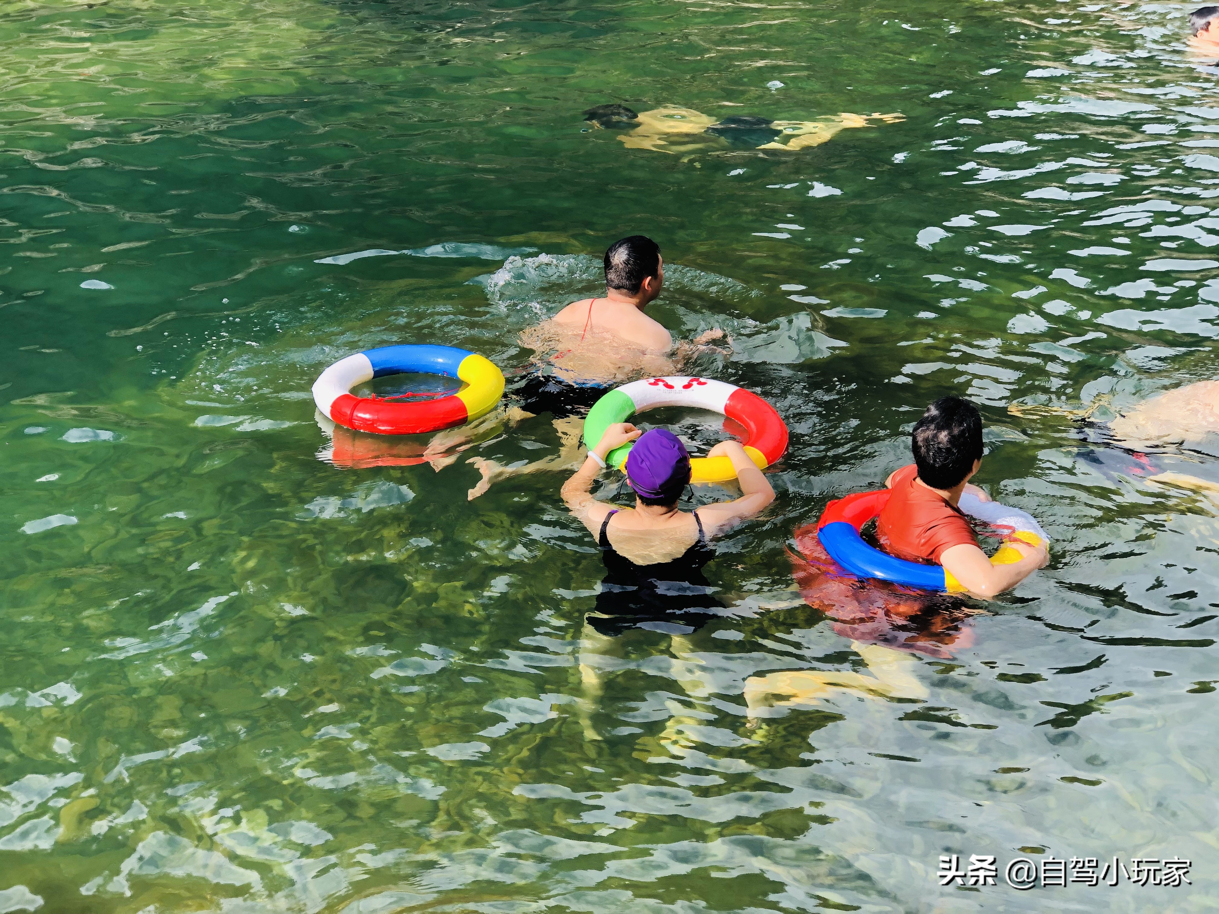 白马村的爱心潭是小玩家见过水最蓝的潭子,真的很漂亮,又大又深,泡着很爽,而且来这里只要15块钱的停车费,洗手间和更衣室都是免费的。不过随着这地方成为网红,游客也越来越多,加之没人管理,环境污染严重,可惜了。