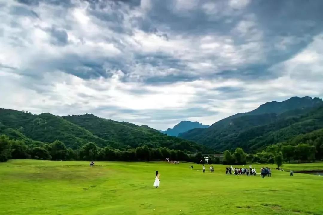 玉渡山的夏天,山花怒放,鸟语花香。这里的高山草坪紧邻忘忧湖,站在草坪上举目远眺,蓝天白云下,连绵的山峰,翠绿的树林,茂密的灌木,形成一轴静美的山水画卷。