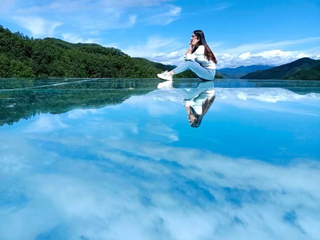 “天空之镜”景点一定不要错过,乘坐着飞天魔毯可以快速抵达,王府竹海的天空之镜位于海拔1200米的伏牛高山之上,是中原地区少见的高山天空之镜,登高望远身边就是触手可及的青山和白云,阳光下,倒映出天空的变幻,时而耀眼,时而绚丽,时而温柔,折射出亮晶晶的光芒,脚下是蓝天白云,远处是群山碧翠,光影交错,流转着山川的空灵之美,站着、坐着、躺着,都能和周围的美景一起进入镜中,随手一拍就是美丽大片,所有景致与色彩都100%被复刻成双份。天空与镜面的无缝对接,如漫步云端,如置身险境,是万种风情,是千般梦幻,走在其间,只觉人游天上,云在脚下。太适合打卡拍照,现在已经成为来王府竹海网红打卡第一景点啦!