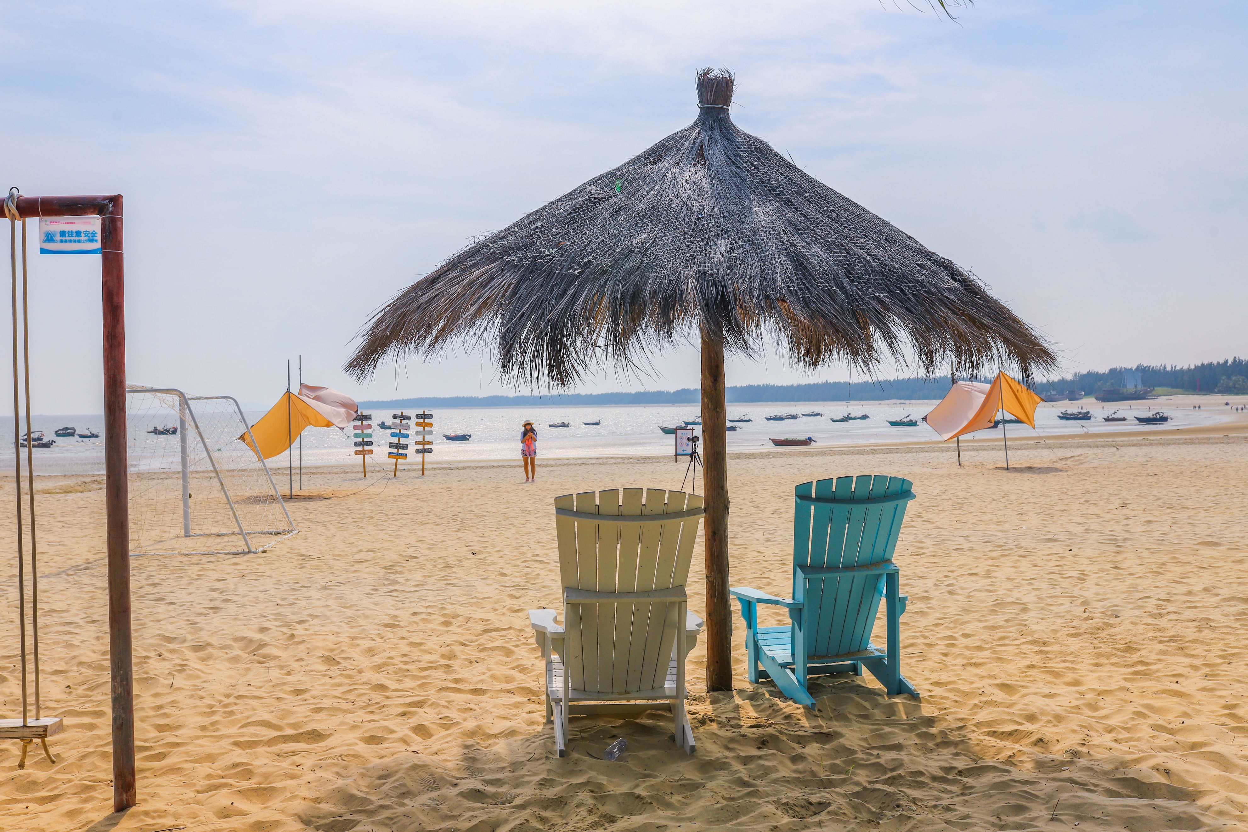 海滩上,搞了许多网红打卡点,还有一些英文标志的路牌,让人有种在外国度假的错觉。